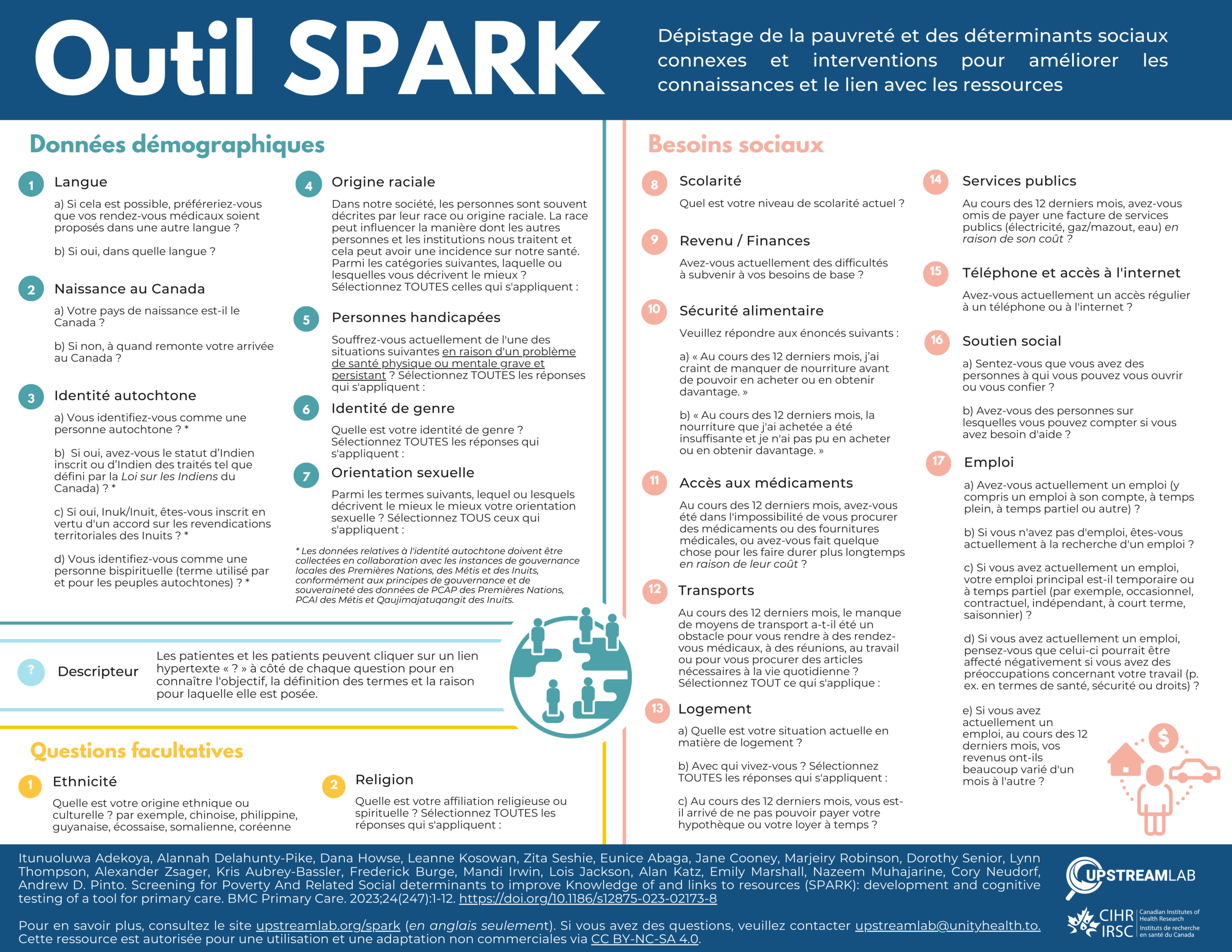The SPARK study is a CIHR-funded national study that was birthed out of the lack of data on social determinants of health in primary care settings in Canada. Healthcare organizations do not currently integrate social determinants data with clinical data, and health providers are not currently trained to routinely respond to social needs. This data could be used to better tailor care to a patient’s social context, improve diagnostic accuracy by incorporating social determinants as risk factors, identify inequities in the uptake of health services and in health outcomes, stimulate the development of new programs, and advance research on inequities.